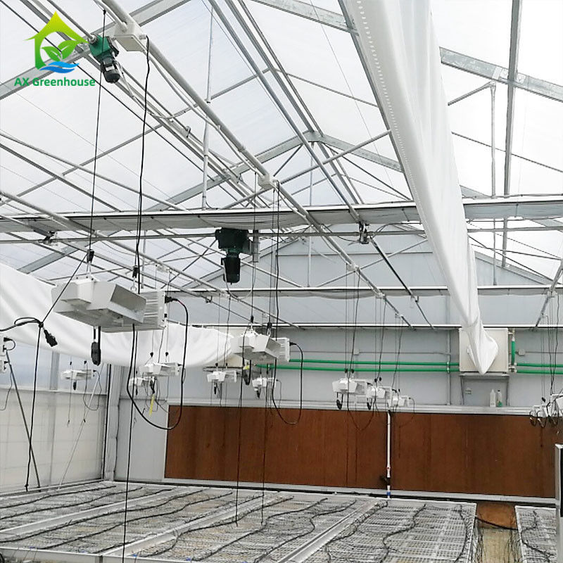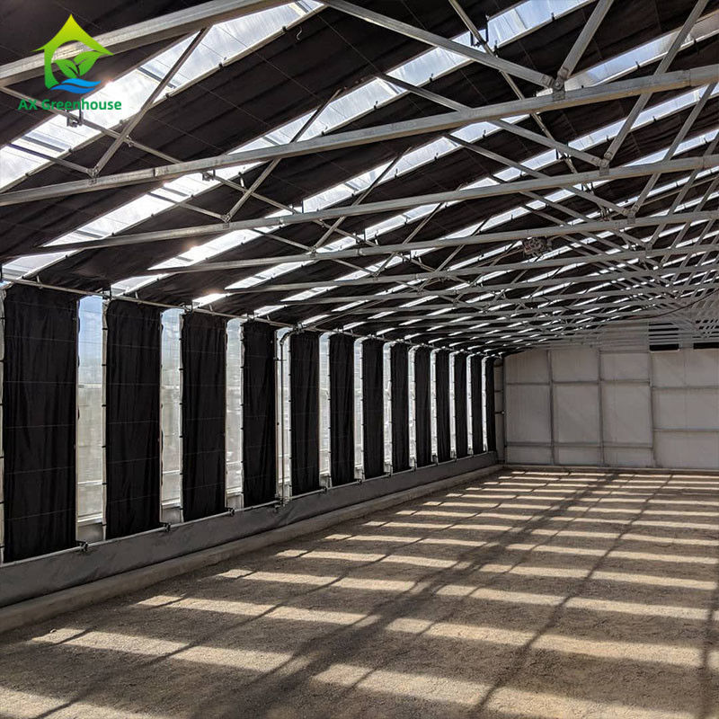 Szklarnia do kontroli światła jest odpowiednia dla wrażliwych roślin, które wymagają kontroli fotoperiodu, takich jak rośliny lecznicze, nasiona, warzywa, kwiaty itp. 100% zaciemnienie, szklarnie zacieniające są bardzo popularne w Stanach Zjednoczonych, Kanadzie, Australii i innych miejscach. Szklarnia do kontroli światła składa się z rur ocynkowanych ogniowo, a osłona wykonana jest z materiału zacieniającego. Konstrukcja ramy jest prosta, tania i łatwa w montażu. Zgodnie z warunkami klimatycznymi, zwykle wyposażona jest w ręczne urządzenie nawijające ścian bocznych, aby uzyskać dobry efekt wentylacji i chłodzenia.